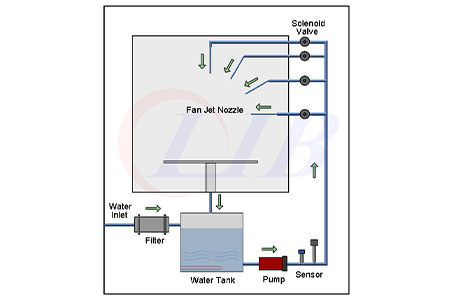 Hệ thống tuần hoàn nước: một loạt các đường ống nước được bố trí trong thiết bị thử nghiệm IPX9K để tạo thành hệ thống tuần hoàn nước, giúp giảm đáng kể lượng nước tiêu thụ.