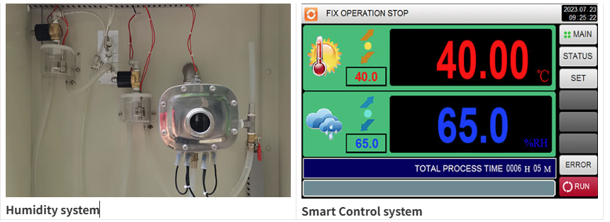 Hệ thống điều khiển trực quan cho phép các cấu hình được thiết lập sẵn hoặc tùy chỉnh hoàn toàn, bao gồm tăng dần, chu kỳ bước hoặc mô phỏng điều kiện khắc nghiệt. Các nghiên cứu lão hóa tăng tốc có thể được tiến hành để dự đoán sự ổn định lâu dài trong một phần nhỏ thời gian.